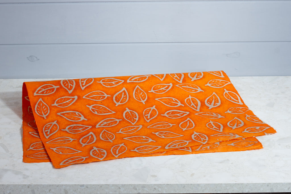 Full sheet lokta paper - Batik Leaf Orange