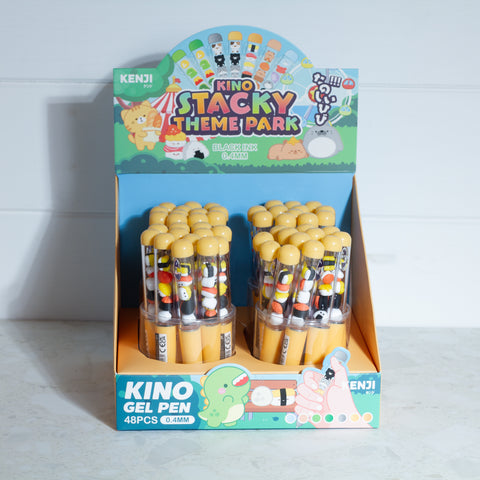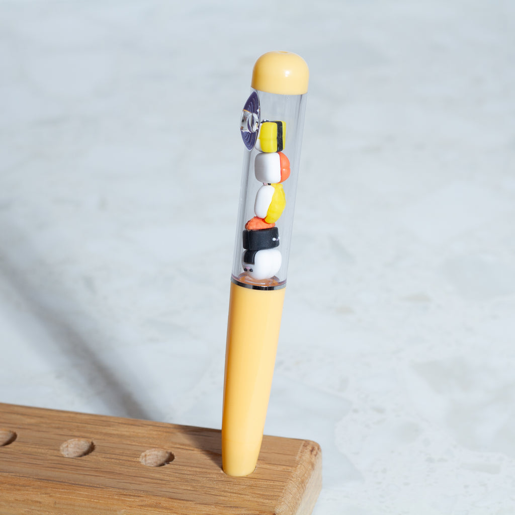 These cute black ink gel pens feature a stack of little pieces of Sushi!