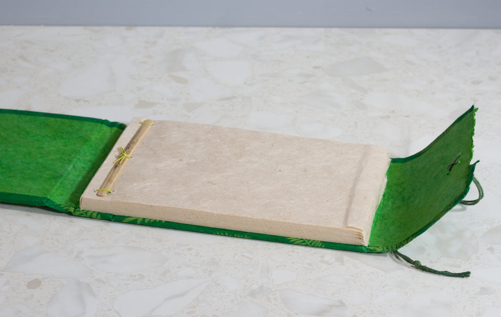 Handmade, naturally dyed, environmentally friendly, ethically traded and chemical/acid free. A versatile Journal with many potential uses including memory notebook, small photo album in addition to general notes! Sustainable resource ~ the bark of the plant is stripped away to make the paper and as the root system of the bush is not damaged it grows back!